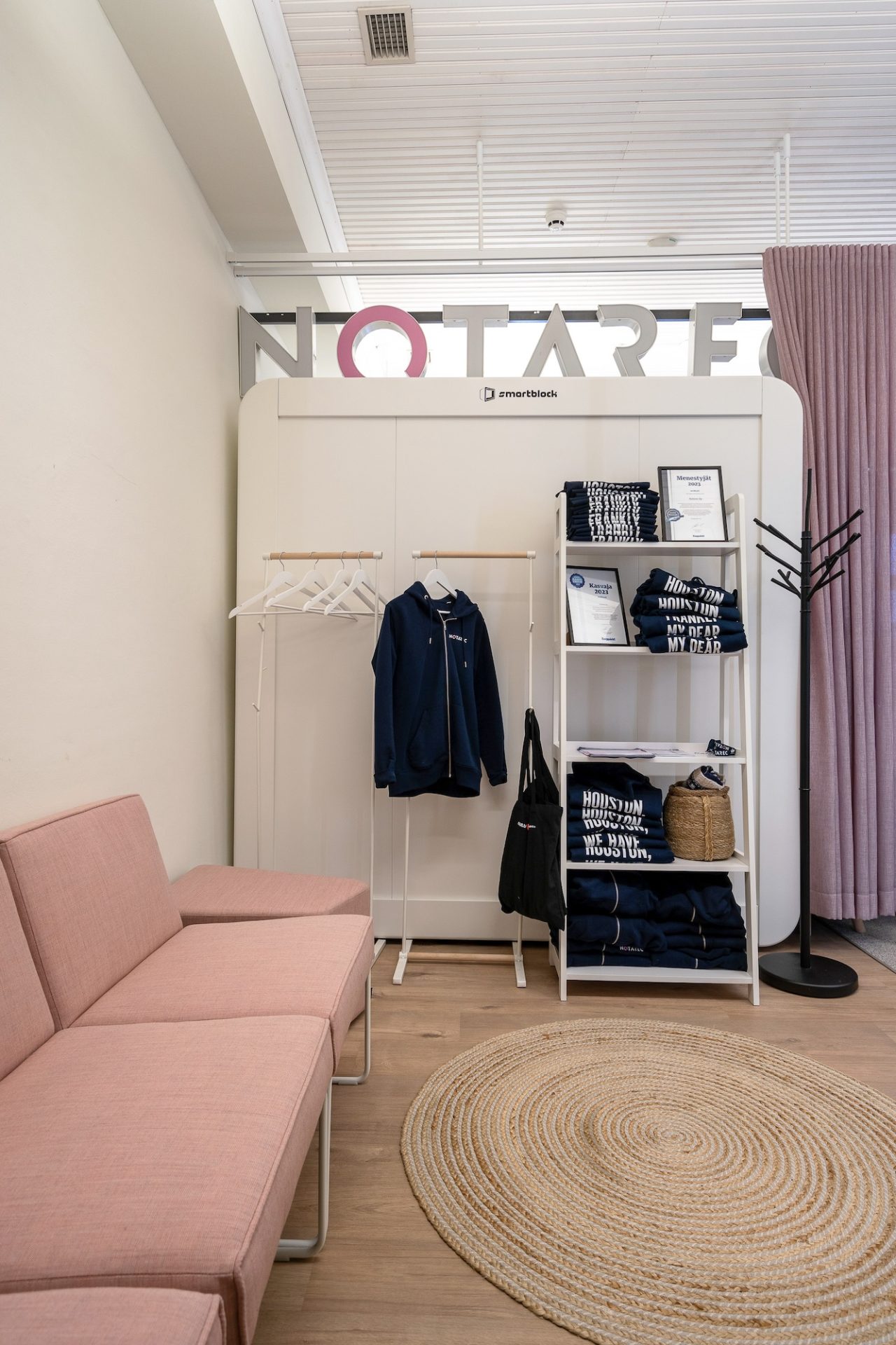 Yhteistyössä Glowdia Oy:n kanssa toteutettu toimitilasuunnittelu. Sisustuksen tavoitteena on viestiä brändiä: luotettavaa, asiantuntevaa ja innovatiivista toimintaa. Tyyli on skandinaavisen moderni ja selkeä, yhdistäen vaaleita sävyjä sekä tarkkaan valittuja väripisteitä Notarecin visuaalisen ilmeen mukaisesti. Huonekaluissa he ovat suosineet ergonomiaa ja muuntojoustavuutta sekä akustiikkaa. Toimitila mahdollistaa sekä tehokkaan työskentelyn että viihtyisät oleskelu- ja neuvottelualueet.