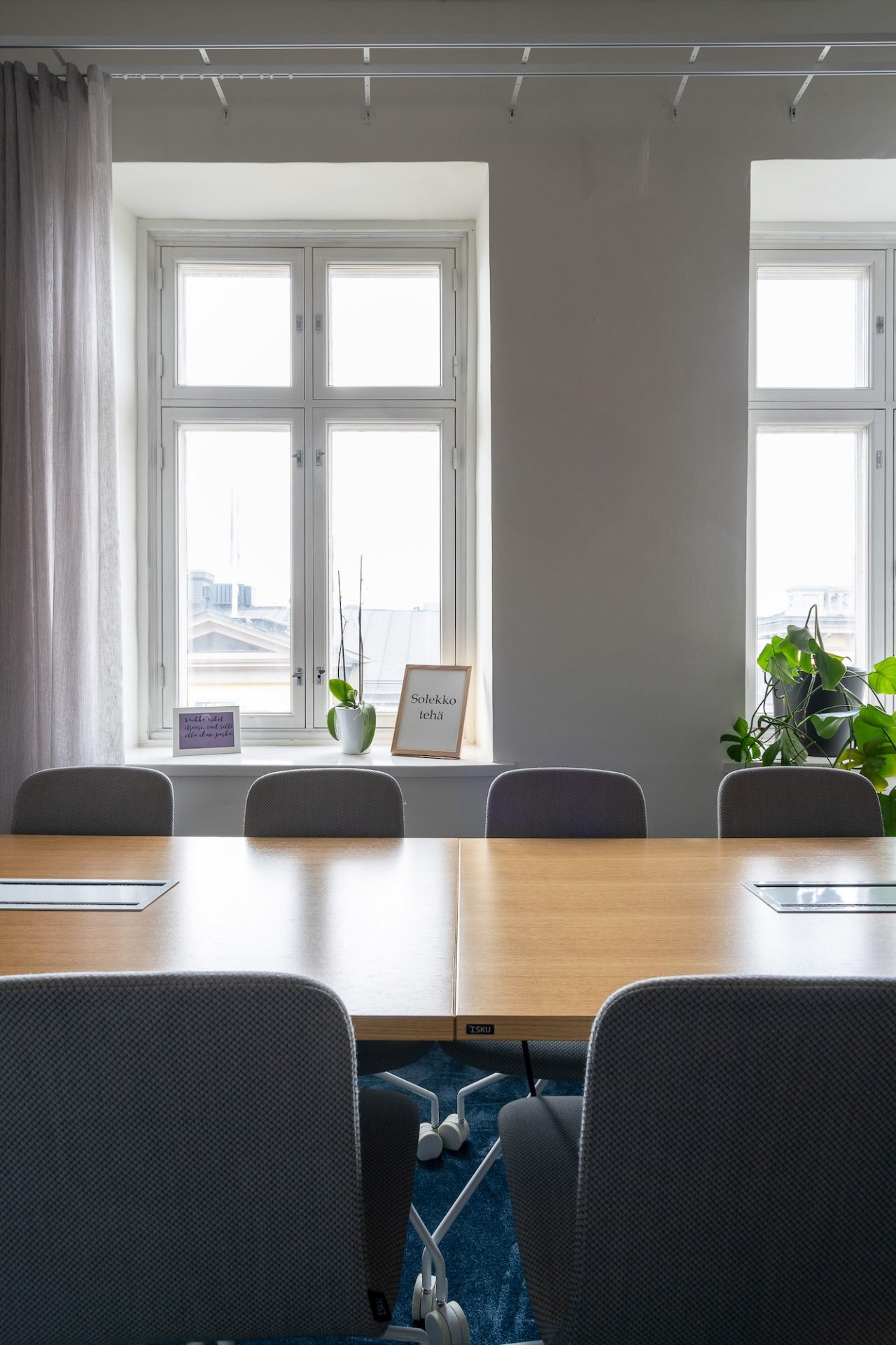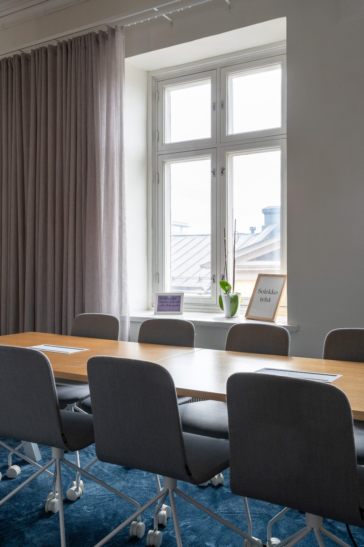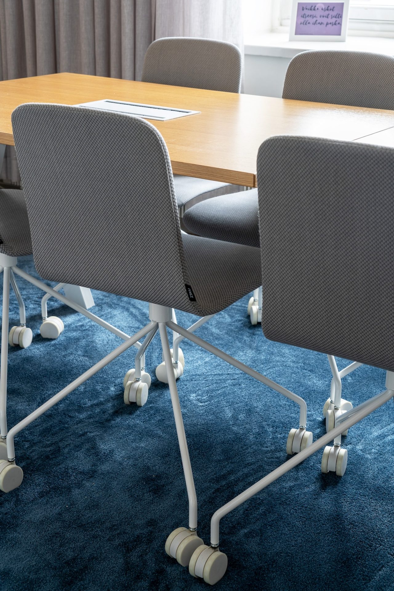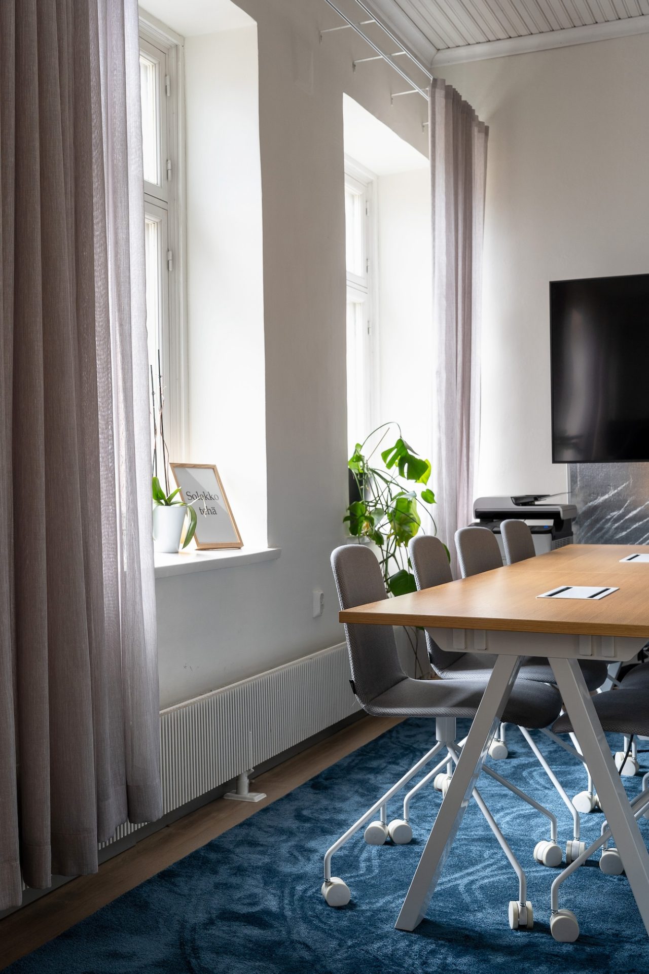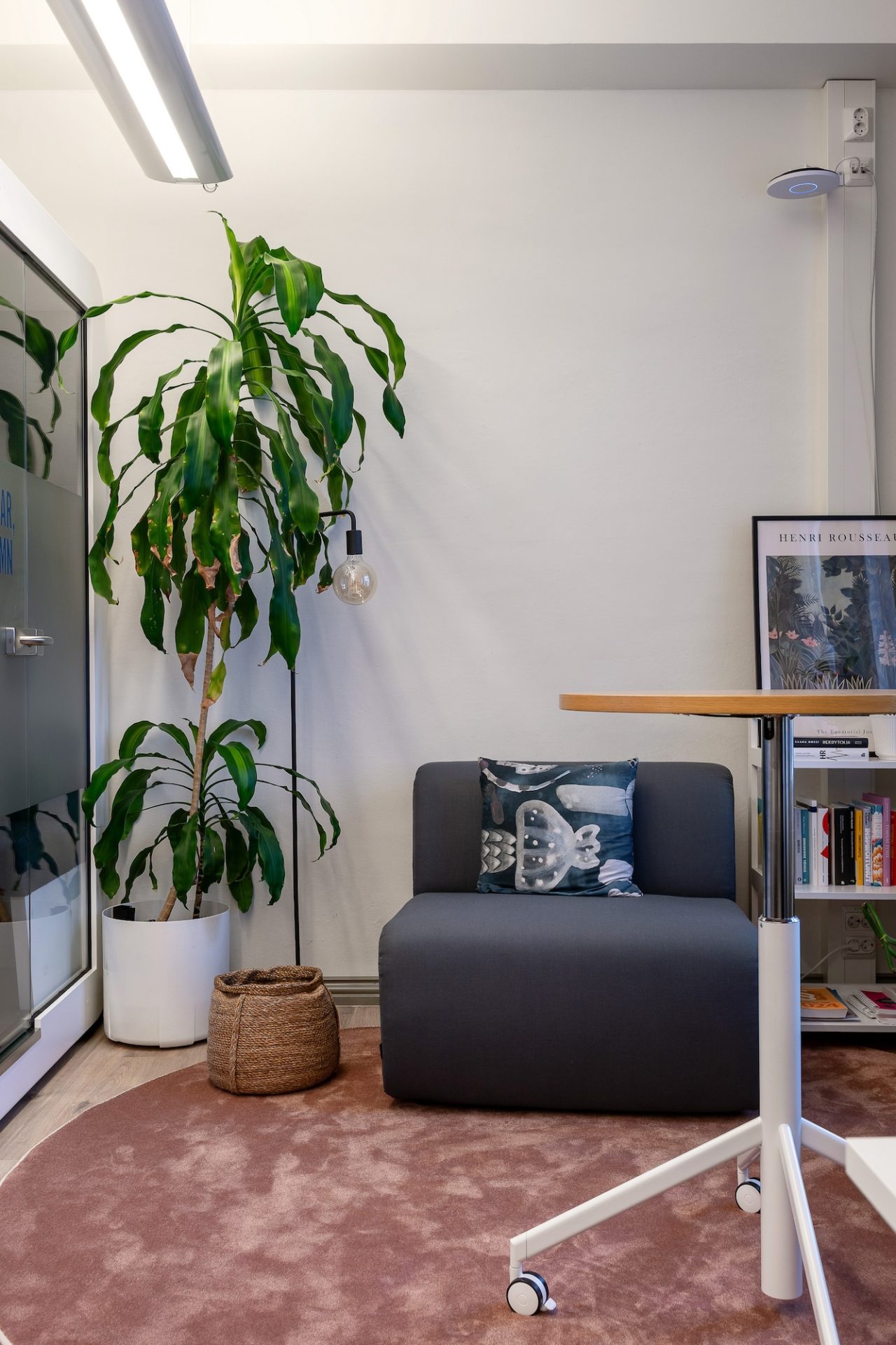 Tässä suunnittelussa toteutin toimitilan layoutin olemassa olevilla kalusteilla ja tekstiileillä, kun toimisto muutti noin 200 m² -> 80 m² toimitilaan.