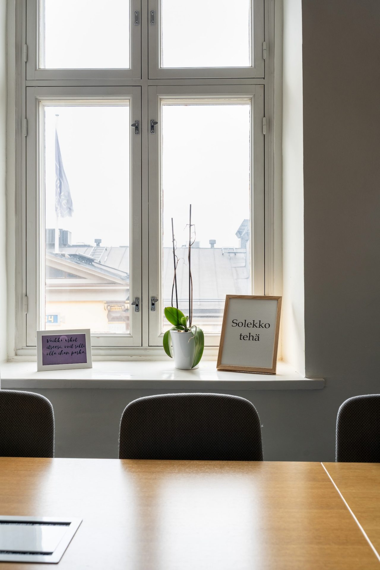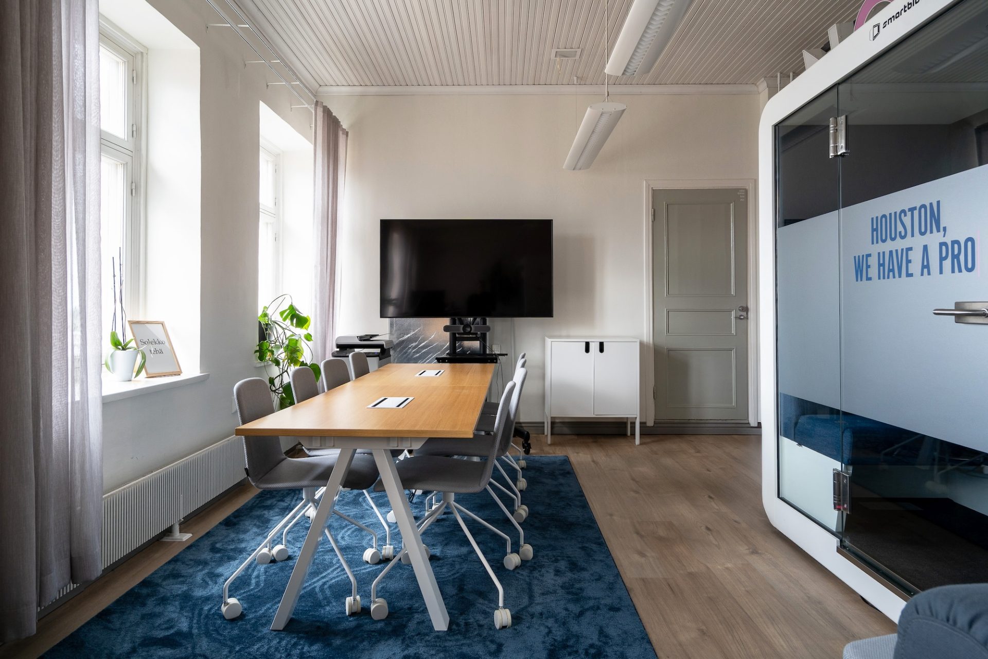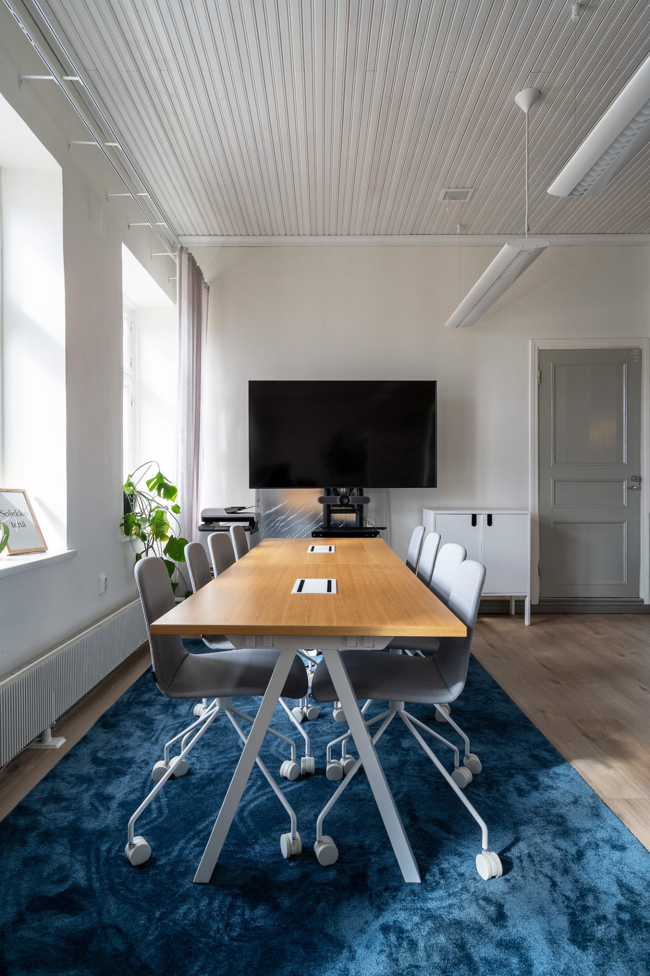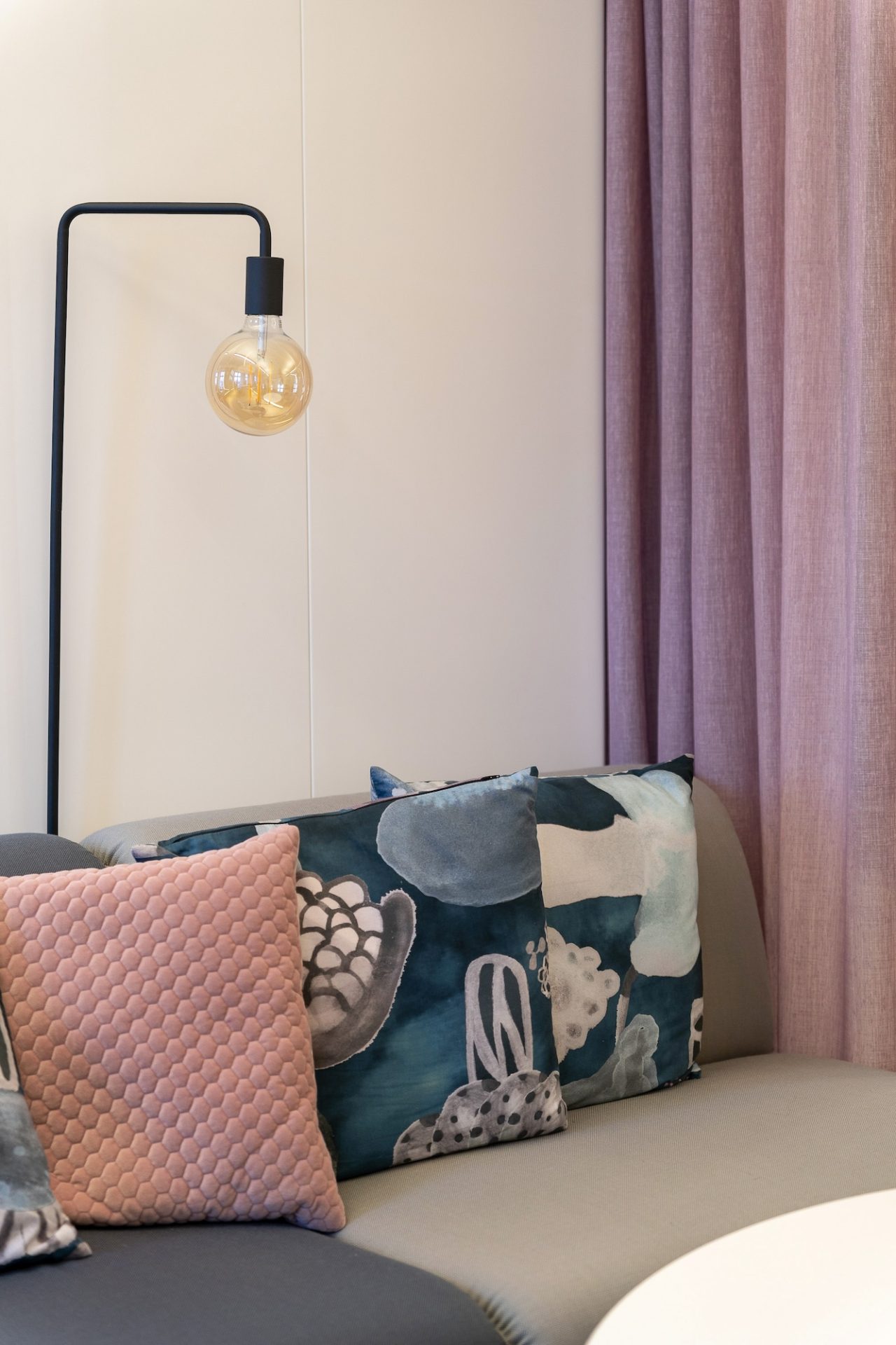 Tässä suunnittelussa toteutin toimitilan layoutin olemassa olevilla kalusteilla ja tekstiileillä, kun toimisto muutti noin 200 m² -> 80 m² toimitilaan.